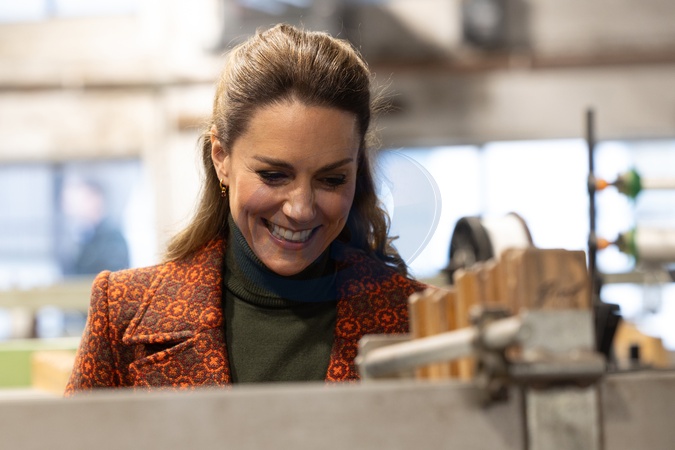 CARDIGAN, WALES - FEBRUARY 3: Catherine, Princess of Wales visits Melin Tregwynt, a woollen mill weaving traditional Welsh designs on February 3, 2026 in Cardigan, Wales. The Princess of Wales visited West Wales to celebrate Welsh textile manufacturers., Credit:WPA Pool / Avalon