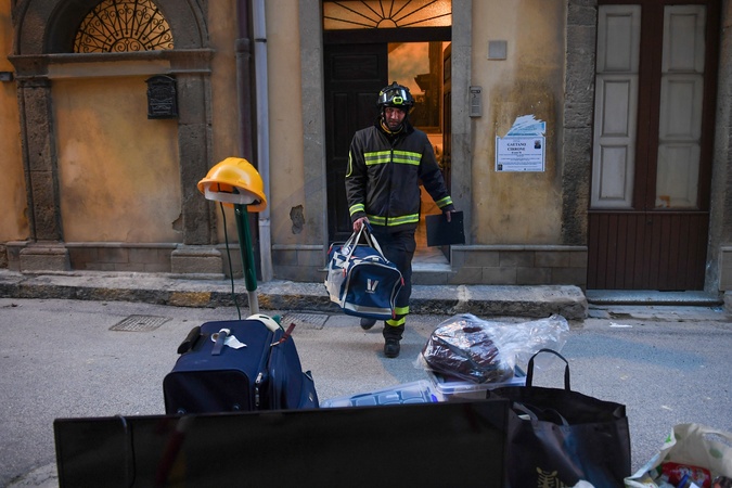 Firefighters continue their work to recover property following the 4km landslide. Pictured are firefighters working to help locals recover their belongings. Niscemi, Italy 03 Feb 2026, Credit:Fortunato Serrano' / Avalon