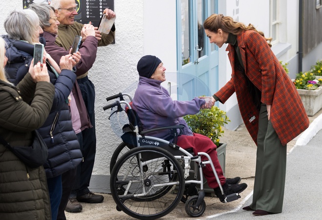 CASTLEMORRIS, WALES - FEBRUARY 3: Catherine, Princess of Wales visits Melin Tregwynt, a woollen mill weaving traditional Welsh designs on February 3, 2026 in Castlemorris, Wales. The Princess of Wales visited West Wales to celebrate Welsh textile manufacturers., Credit:Maxine Howells Photography / Avalon