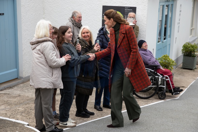 CASTLEMORRIS, WALES - FEBRUARY 3: Catherine, Princess of Wales visits Melin Tregwynt, a woollen mill weaving traditional Welsh designs on February 3, 2026 in Castlemorris, Wales. The Princess of Wales visited West Wales to celebrate Welsh textile manufacturers., Credit:Maxine Howells Photography / Avalon