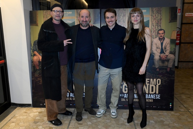 Photocall for the film "We'll Work When We Grow Up." Pictured are Niccolò Ferrero, Marianna Folli, Biagio Antonacci, and Antonio Albanese. . Milan, Italy 03 Feb 2026, Credit:AGF / Avalon