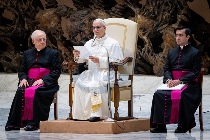 Pope Leo XIV leads his traditional Wednesday General Audience in Paul VI Audience Hall in Vatican City, Vatican, on 04 February 2026., Credit:Stefano Costantino TTL / Avalon