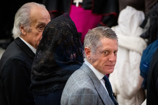 Lapo Elkann with his wife Joana Lemos and João Mascarenhas de Lemos attend Pope Leo XIV's Wednesday General Audience in Paul VI Audience Hall in Vatican City, Vatican, on 04 February 2026., Credit:Stefano Costantino TTL / Avalon