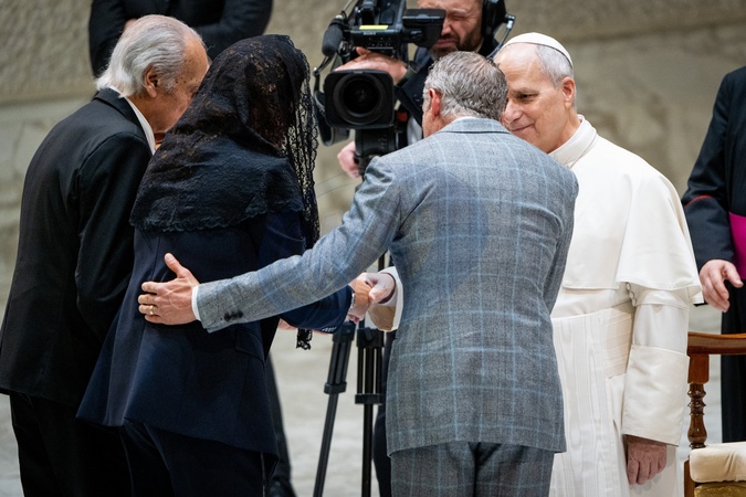 Lapo Elkann, with his wife Joana Lemos and João Mascarenhas de Lemos meet Pope Leo XIV during the Wednesday General Audience in Paul VI Audience Hall in Vatican City, Vatican, on 04 February 2026., Credit:Stefano Costantino TTL / Avalon
