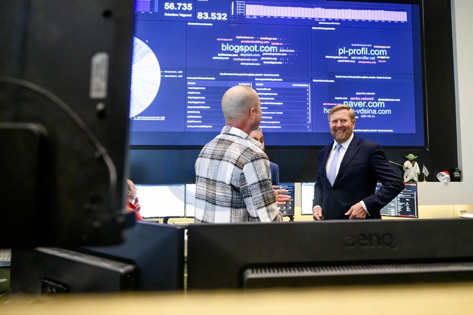 The King and the Minister of Economic Affairs visit the KPN Network and Security Operations Center in the context of resilient telecommunications, Hilversum, The Netherlands