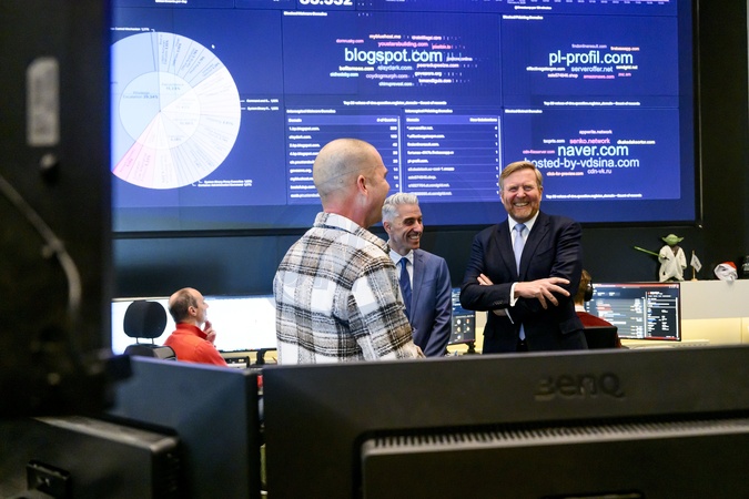 The King and the Minister of Economic Affairs visit the KPN Network and Security Operations Center in the context of resilient telecommunications, Hilversum, The Netherlands