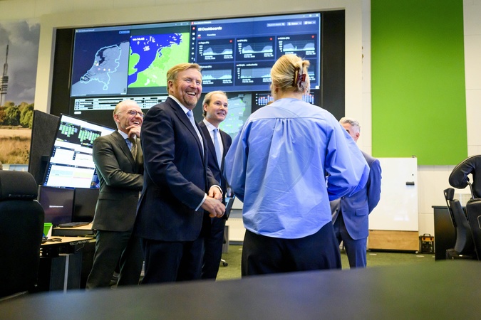 The King and the Minister of Economic Affairs visit the KPN Network and Security Operations Center in the context of resilient telecommunications, Hilversum, The Netherlands