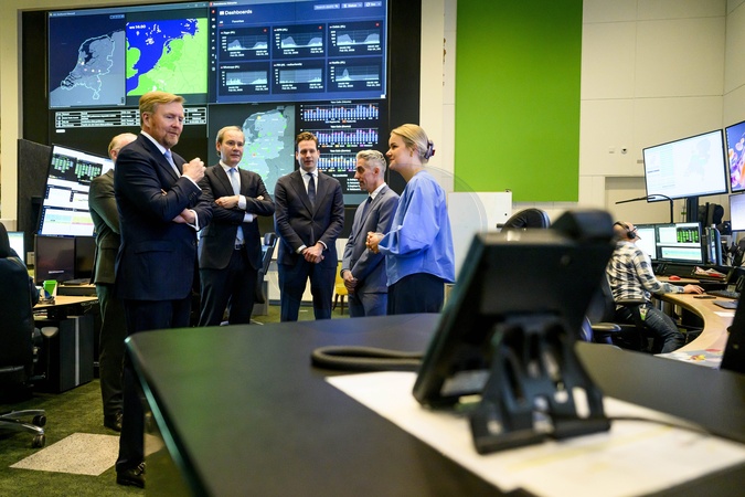 The King and the Minister of Economic Affairs visit the KPN Network and Security Operations Center in the context of resilient telecommunications, Hilversum, The Netherlands