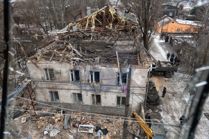 A two-storey apartment block was damaged in a Russian drone attack, Odesa, Ukraine, February 4, 2026. Five people were injured in the overnight strike on the southern port city, which also damaged residential buildings as well as civil and industrial infrastructure., Credit:Nina Liashonok / Avalon