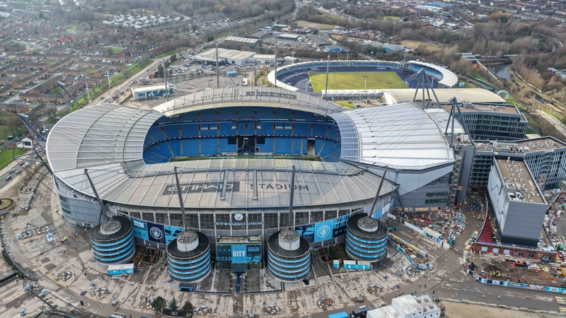 An aerial view of The Etihad Stadium and the new hotel and North Stand during the Carabao Cup Semi-Final second leg match Manchester City vs Newcastle United at Etihad Stadium, Manchester, United Kingdom, 4th February 2026, Credit:Mark Cosgrove/News Images / Avalon