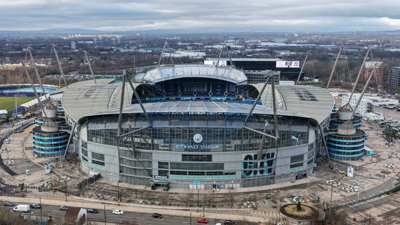 An aerial view of The Etihad Stadium during the Carabao Cup Semi-Final second leg match Manchester City vs Newcastle United at Etihad Stadium, Manchester, United Kingdom, 4th February 2026, Credit:Mark Cosgrove/News Images / Avalon