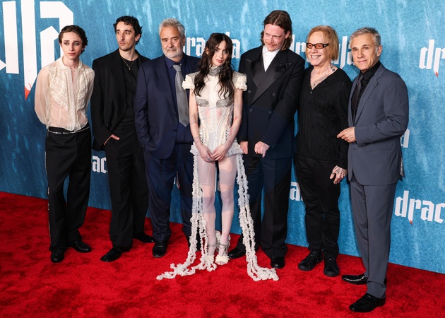 HOLLYWOOD, LOS ANGELES, CALIFORNIA, USA - FEBRUARY 03: Raphael Luce, Ewens Abid, Luc Besson, Zoe Bleu (Zoë Bleu) wearing Dilara Findikoglu SS26 RTW, Caleb Landry Jones, Danny Elfman and Christoph Waltz arrive at the Los Angeles Premiere Of Vertical Entertainment's 'Dracula' held at the TCL Chinese Theatre IMAX on February 3, 2026 in Hollywood, Los Angeles, California, United States., Credit:Xavier Collin / Avalon
