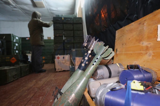 A fighter of the engineering and sapper group of the Typhoon special-purpose unmanned systems detachment of the National Guard of Ukraine upgrades munitions for drone operators at an engineering laboratory, Ukraine, on February 3, 2026, Credit:Viacheslav Madiievskyi / Avalon