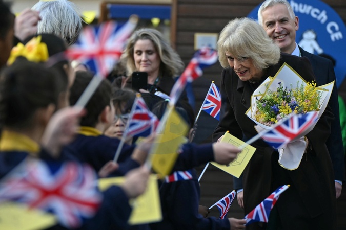 Britain's Queen Camilla departs after attending the opening of a library at Christ Church Primary School in London on February 4, 2026, to help mark the "National Year of Reading" and meet with pupil librarians., Credit:JUSTIN TALLIS / Avalon