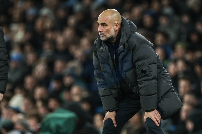 Pep Guardiola manager of Manchester City looks on during the Carabao Cup Semi-Final second leg match Manchester City vs Newcastle United at Etihad Stadium, Manchester, United Kingdom, 4th February 2026, Credit:Mark Cosgrove/News Images / Avalon