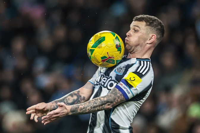 Kieran Trippier of Newcastle Untied controls the ball during the Carabao Cup Semi-Final second leg match Manchester City vs Newcastle United at Etihad Stadium, Manchester, United Kingdom, 4th February 2026, Credit:Mark Cosgrove/News Images / Avalon