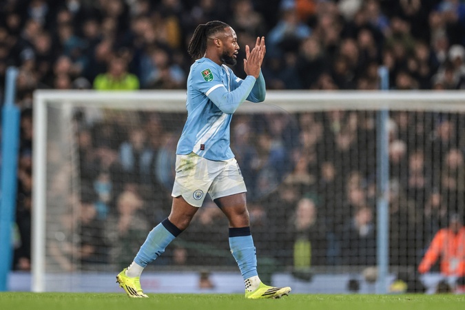 Antonie Semenyo of Manchester City applauds the fans as he is substituted off during the Carabao Cup Semi-Final second leg match Manchester City vs Newcastle United at Etihad Stadium, Manchester, United Kingdom, 4th February 2026, Credit:Mark Cosgrove/News Images / Avalon