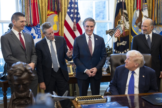 President Donald Trump listens to Ivanhoe Mines Founder Robert Friedland during an announcement on American Critical Minerals Strategic Reserve, Monday, February 2, 2026 in the Oval Office of the White House. Photograph by Molly Riley), Credit:Molly Riley / Avalon