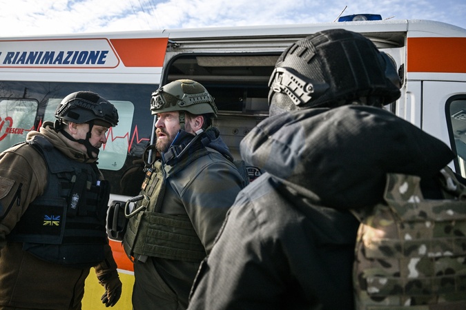 Volunteers participate in the evacuation from front-line Yurkivka village, Zaporizhzhia region, Ukraine, February 3, 2026., Credit:Dmytro Smolienko / Avalon