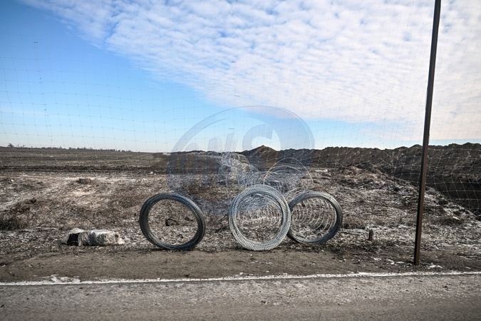 The coils of barbed wire stretch into a field in the Tavriiske village community, Zaporizhzhia region, Ukraine, February 3, 2026., Credit:Dmytro Smolienko / Avalon