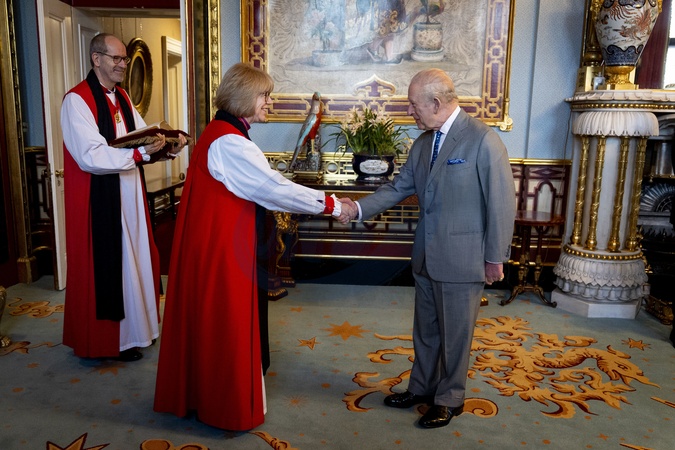 RETRANSMITTING CORRECTING TITLE FOR THE ARCHBISHOP OF CANTERBURY The Bishop of Hereford the Rt Revd Richard Jackson who is the King's Clerk of the Closet, looks on as King Charles III meets with the Archbishop of Canterbury (The Most Reverend & Right Honourable Dame Sarah Mullally) during an audience at Buckingham Palace, London. King Charles received the oath of allegiance from Dame Sarah Mullally on Wednesday in which she acknowledged the King as the supreme governor of the Church of England. Picture date: Wednesday February 4, 2026., Credit:Aaron Chown / Avalon