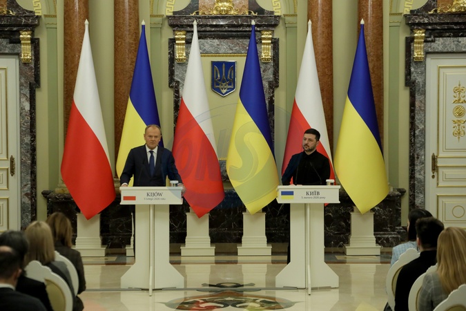 President of Ukraine Volodymyr Zelenskyy (R) and Prime Minister of the Republic of Poland Donald Tusk address the media during a joint press conference following their meeting in Kyiv, Ukraine, on February 5, 2026, Credit:Yuliia Ovsiannikova / Avalon