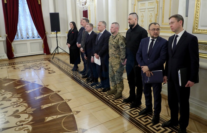 Deputy Prime Minister for Humanitarian Policy and Minister of Culture of Ukraine Tetiana Berezhna, Minister for Foreign Affairs of Ukraine Andrii Sybiha, Minister of Economy, Environment and Agriculture of Ukraine Oleksii Sobolev, Deputy Heads of the Office of the President of Ukraine Ihor Brusylî, Ihor Zhovkva, and Pavlo Palisa, Adviser to the President of Ukraine for Strategic Affairs Oleksandr Kamyshin, and Ambassador Extraordinary and Plenipotentiary of Ukraine to the Republic of Poland Vasyl Bodnar (L to R) participate in a meeting between President of Ukraine Volodymyr Zelenskyy and Prime Minister of the Republic of Poland Donald Tusk in Kyiv, Ukraine, on February 5, 2026, Credit:Yuliia Ovsiannikova / Avalon