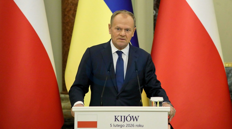 Prime Minister of the Republic of Poland Donald Tusk addresses the media during a joint press conference with President of Ukraine Volodymyr Zelenskyy following their meeting in Kyiv, Ukraine, on February 5, 2026, Credit:Yuliia Ovsiannikova / Avalon