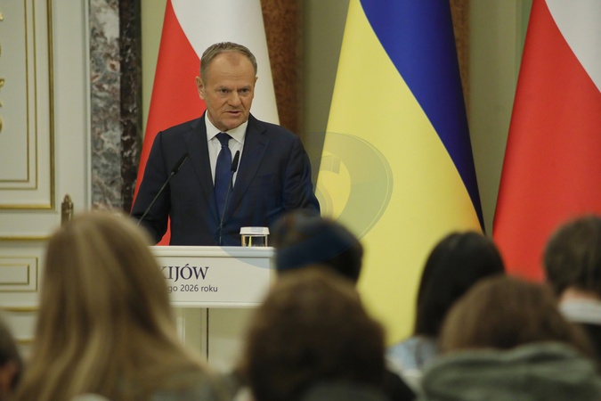 Prime Minister of the Republic of Poland Donald Tusk attends a joint press conference with President of Ukraine Volodymyr Zelenskyy following their meeting in Kyiv, Ukraine, on February 5, 2026, Credit:Yuliia Ovsiannikova / Avalon