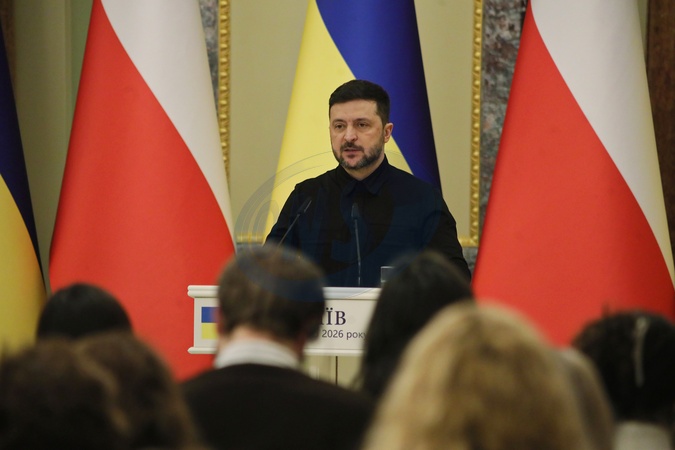 President of Ukraine Volodymyr Zelenskyy attends a joint press conference with Prime Minister of the Republic of Poland Donald Tusk at the conclusion of their meeting in Kyiv, Ukraine, on February 5, 2026, Credit:Yuliia Ovsiannikova / Avalon
