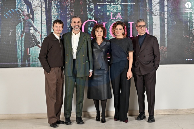 February 5, 2026, Rome. Presentation of the film "La Gioia." Pictured is director Nicolangelo Gelormini and the cast, including Saul Nanni, Valeria Golino, Jasmine Trinca, and Francesco Colella., Credit:Maria Laura Antonelli / Avalon