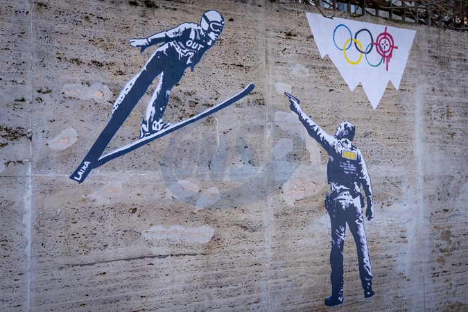 "Ice Out!" is the new mural by street artist LAIKA: a denunciation of the presence of the American anti-immigration agency at the Olympic Games in Milan-Cortina, Rome, Italy, on 06 February 2026.