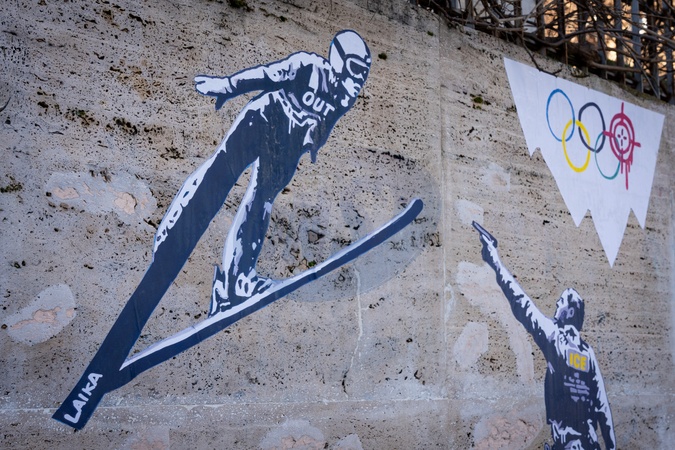 "Ice Out!" is the new mural by street artist LAIKA: a denunciation of the presence of the American anti-immigration agency at the Olympic Games in Milan-Cortina, Rome, Italy, on 06 February 2026.