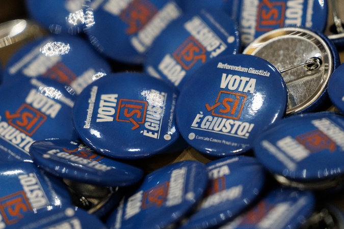 Event, The Transversality of the Yes, Inauguration of the judicial year of Italian criminal lawyers in the photo pins for the Yes to the referendum . Rome, Italy 06 Feb 2026, Credit:Francesco Fotia / Avalon