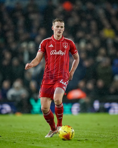 Zach Abbott of Nottingham Forest makes a run with the ball during the Premier League match Leeds United vs Nottingham Forest at Elland Road, Leeds, United Kingdom on 06 February 2026, Credit:Maynard Manyowa/News Images / Avalon