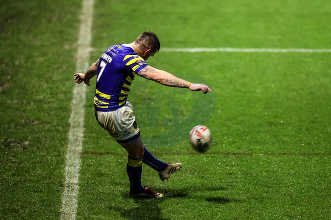 Marc Sneyd of Warrington Wolves converts for a goal during the Betfred Challenge Cup match Warrington Wolves vs Sheffield Eagles at The Halliwell Jones Stadium, Warrington, United Kingdom on 06 February 2026, Credit:Ae Cosgrove/News Images / Avalon
