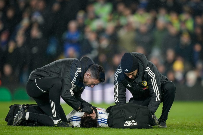 Ilia Gruev of Leeds United receives treatment during the Premier League match Leeds United vs Nottingham Forest at Elland Road, Leeds, United Kingdom on 06 February 2026, Credit:Maynard Manyowa/News Images / Avalon