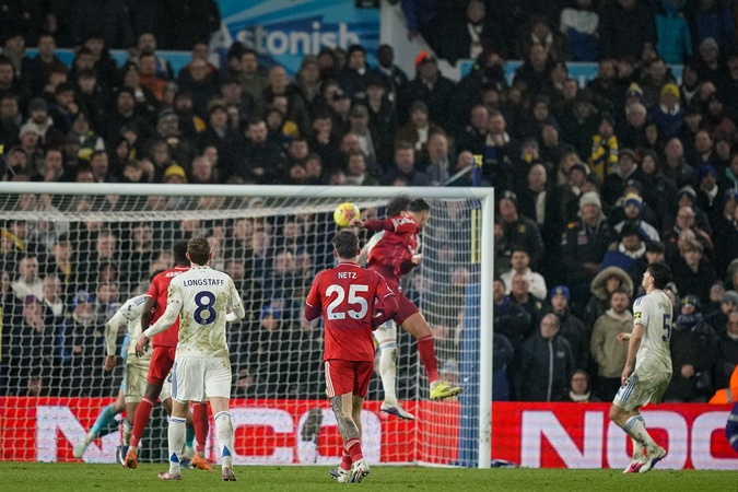 Lorenzo Lucca of Nottingham Forest scores to make it 3-1 during the Premier League match Leeds United vs Nottingham Forest at Elland Road, Leeds, United Kingdom on 06 February 2026, Credit:Maynard Manyowa/News Images / Avalon
