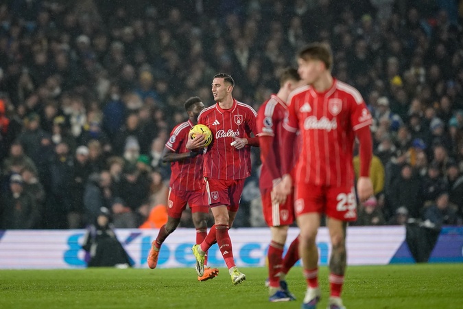Lorenzo Lucca of Nottingham Forest celebrates his goal to make it 3-1 during the Premier League match Leeds United vs Nottingham Forest at Elland Road, Leeds, United Kingdom on 06 February 2026, Credit:Maynard Manyowa/News Images / Avalon