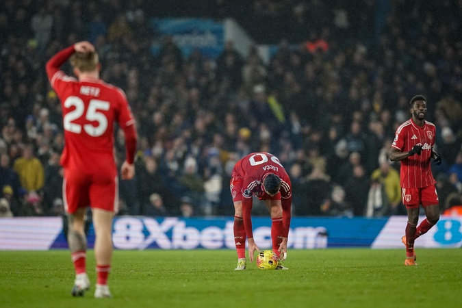 Lorenzo Lucca of Nottingham Forest celebrates his goal to make it 3-1 during the Premier League match Leeds United vs Nottingham Forest at Elland Road, Leeds, United Kingdom on 06 February 2026, Credit:Maynard Manyowa/News Images / Avalon