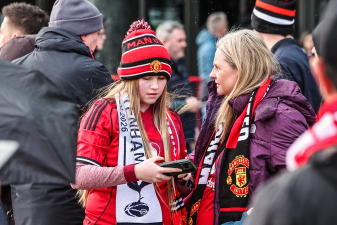 Manchester United fans arrive at Old Trafford during the Premier League match Manchester United vs Tottenham Hotspur at Old Trafford, Manchester, United Kingdom on 07 February 2026, Credit:Ae Cosgrove/News Images / Avalon