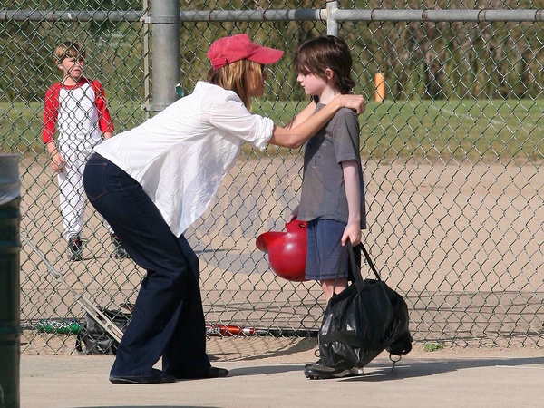 Calista Flockhart z synem w parku, Santa Monica