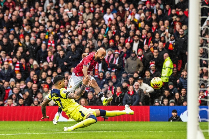 Bryan Mbeumo of Manchester United shoots on goal during the Premier League match Manchester United vs Tottenham Hotspur at Old Trafford, Manchester, United Kingdom on 07 February 2026, Credit:Ae Cosgrove/News Images / Avalon