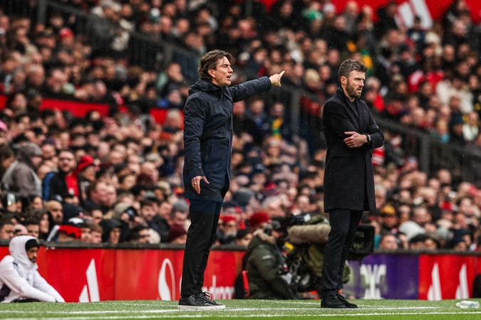 Thomas Frank manager of Tottenham Hotspur gives his team instructions during the Premier League match Manchester United vs Tottenham Hotspur at Old Trafford, Manchester, United Kingdom on 07 February 2026, Credit:Ae Cosgrove/News Images / Avalon