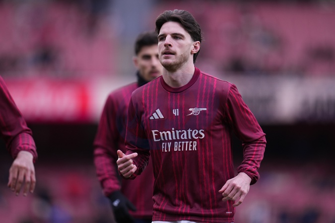 Declan Rice of Arsenal warming up during the Premier League match Arsenal vs Sunderland at Emirates, London, United Kingdom on 07 February 2026, Credit:Harvey Murphy/News Images / Avalon