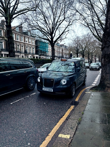 London, UK. 7 February 2026. Vehicles travel along a tree-lined residential avenue in Kensington, west London, during wet winter conditions., Credit:Alexander Seale / Avalon