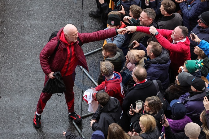 Steve Tandy head coach of Wales shakes hands with a fan during the Guinness Six Nations 2026 match England vs Wales at Allianz Stadium, Twickenham, United Kingdom on 07 February 2026, Credit:Mark Cosgrove/News Images / Avalon