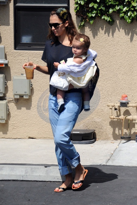 Jessica Alba z corka wraca z restauracji Le Pain Quotidien, Los Angeles