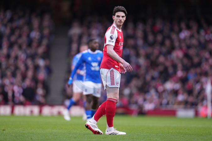 Declan Rice of Arsenal during the Premier League match Arsenal vs Sunderland at Emirates, London, United Kingdom on 07 February 2026, Credit:Harvey Murphy/News Images / Avalon