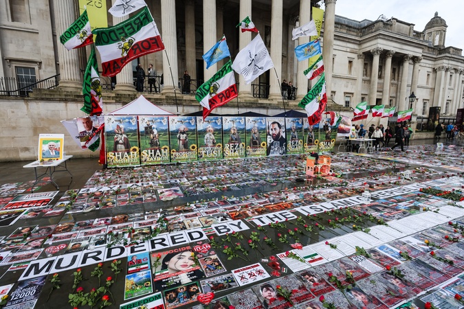 Memorial for victims of Iranian government in Trafalgar Square in London, UK, on 07 February 2026